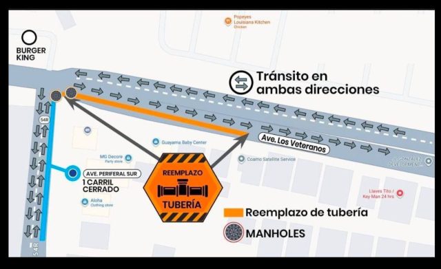 La Autoridad de Acueductos y Alcantarillados (AAA) anunció los trabajos de la renovación de una tubería que demoran poco más de un mes y afectarán el flujo vehicular en la avenida Los Veteranaos, en Guayama.