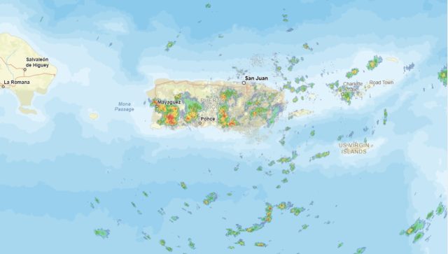 El radar Doppler indicó que entre 1 y 2 pulgadas de lluvia ya han caído en la región. Se anticipa la caída de entre 1 y 2 pulgadas adicionales, lo que podría provocar acumulaciones en zonas de poco drenaje, crecidas en arroyos y desbordes en quebradas.