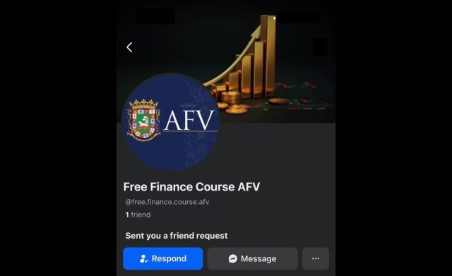 Según la AFV, el perfil fraudulento identificado como “Free Finance Course AFV” usa de forma indebida el logo institucional y envía solicitudes de amistad, invitaciones o peticiones para dar “me gusta” a usuarios en redes sociales.