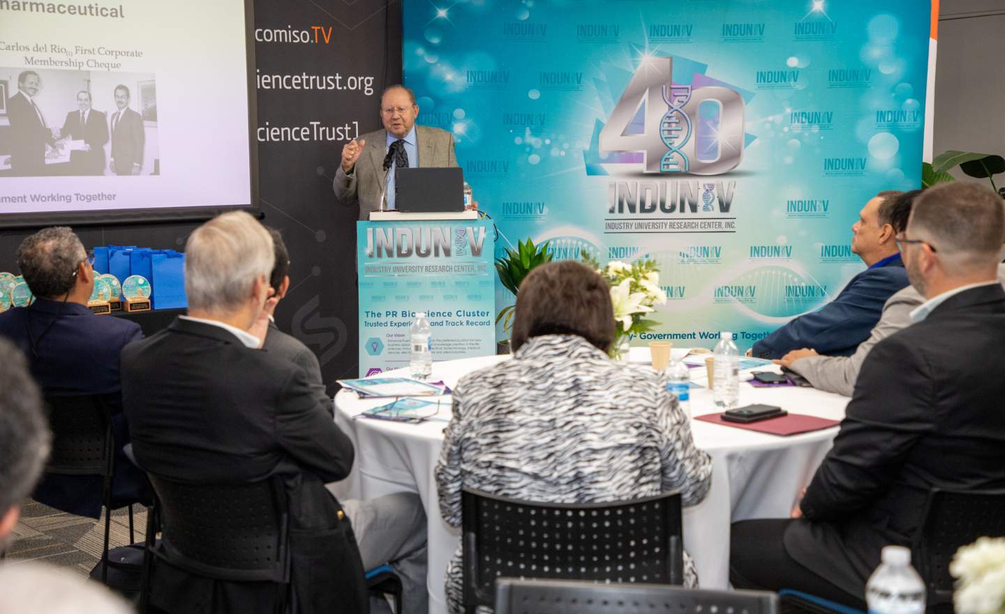 “Celebrar estos 40 años no es solo mirar al pasado, sino reafirmar nuestro compromiso con el futuro de la ciencia en Puerto Rico. Por eso, nuestro agradecimiento a cada persona que ha formado parte de este camino”, expresó Iván Lugo, director ejecutivo de INDUNIV, durante el evento que se llevó a cabo en la sede del Fideicomiso para la Ciencia, Tecnología e Investigación de Puerto Rico (FCTIPR).