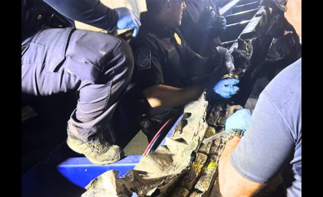 Los oficiales detectaron irregularidades en varios chasis durante inspecciones de rutina que provocaron una verificación más profunda, lo que permitió hallar compartimentos modificados y bolsas de lona escondidas entre la carga con un valor que supera los 10 millones de dólares.