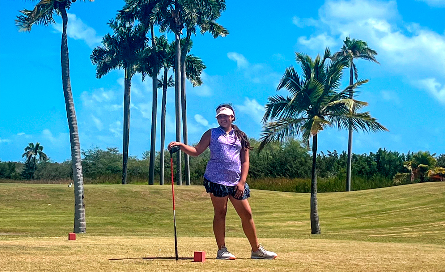 Emma Molina Torres, estudiante de sexto grado del Ponce Cristian School, es una de las niñas que toma cursos de golf. Emma tiene 11 años y es vecina del campo del golf de Costa Caribe. Lleva dos años jugando golf en ese lugar, un campo de golf que tiene a pasos de su vivienda.