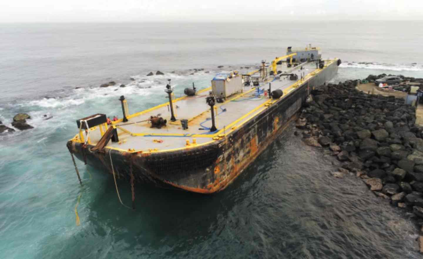 La barcaza Defiant encalló cerca del mediodía del 9 de febrero frente a la entrada del Puerto de San Juan. No se reportaron personas heridas y la Guardia Costera estableció una zona de seguridad de 200 yardas alrededor de la embarcación hasta nuevo aviso.