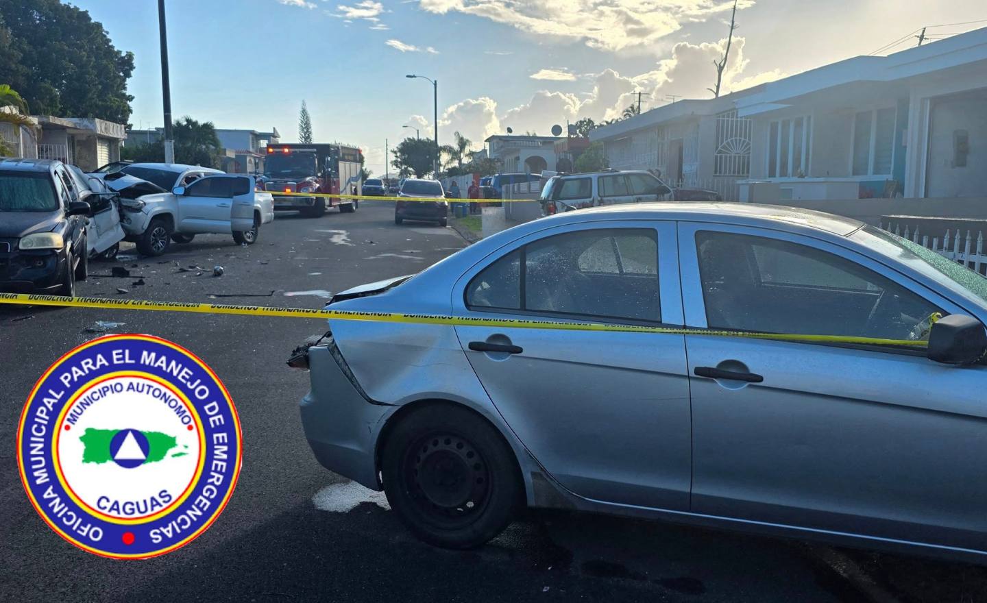 La Policía informó que el hombre conducía una guagua Toyota Tacoma, color blanca, cuando chocó con los autos estacionados frente a las residencias y que inicialmente describió como «un objeto fijo».
