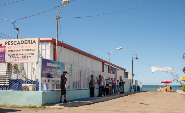Frente a dos de las pescaderías, una en Peñuelas y otra en Ponce, había fila de consumidores a la espera de poder comprar este fruto del mar.