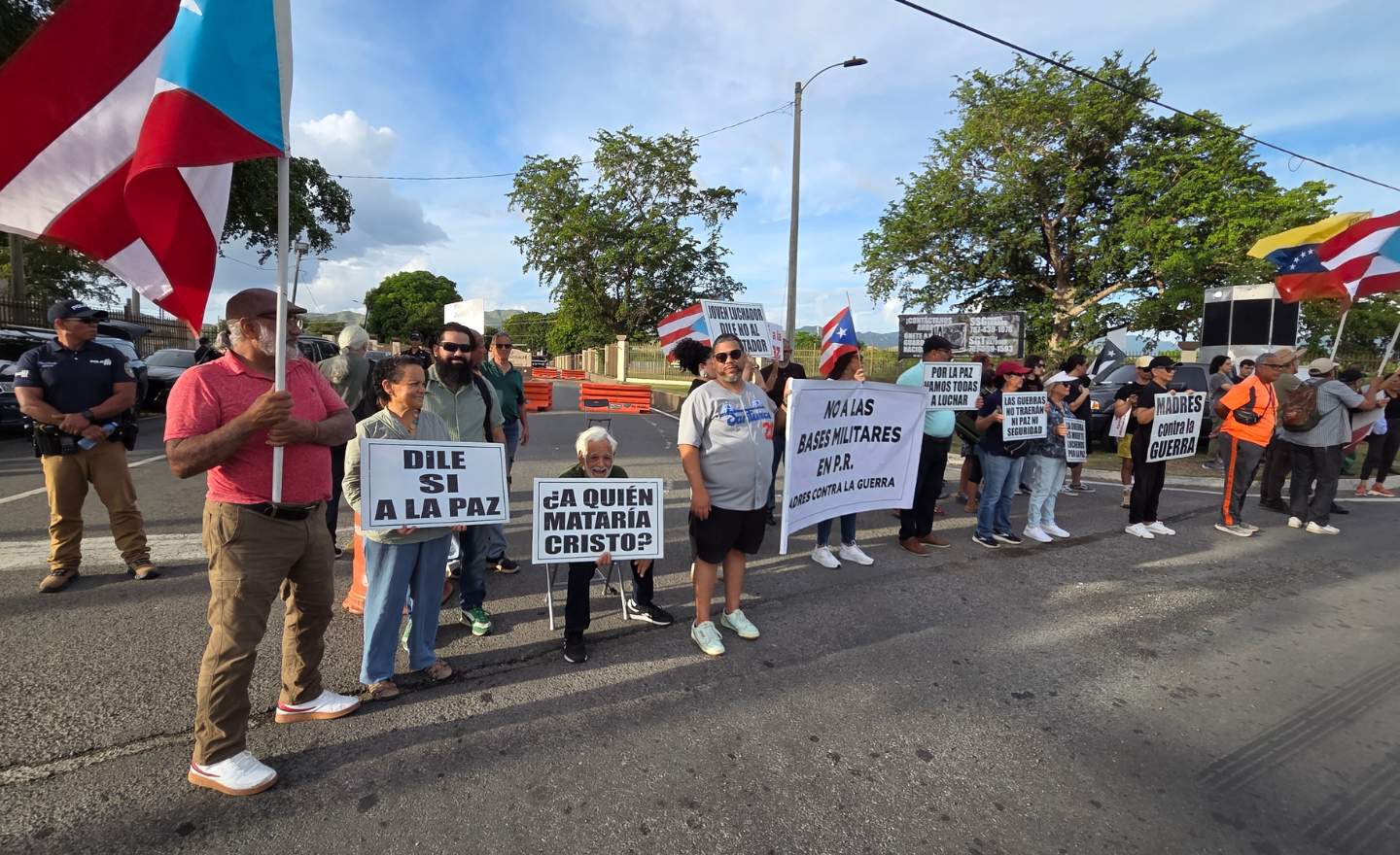 Y frente al Campamento Santiago, en Salinas, el pasado sábado, grupos en contra de la presencia militar en Puerto Rico, entre ellos Madres Contra la Guerra, realizaron una manifestación.
