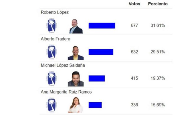 Según los resultados preliminares, divulgados a las 4:53 de la tarde con el 100% de los colegios contabilizados, unos 2,147 electores participaron en el proceso. López superó al exadministrador de la Administración de Desarrollo Socioeconómico de la Familia (ADSEF), Alberto Fradera, quien quedó en segunda posición.