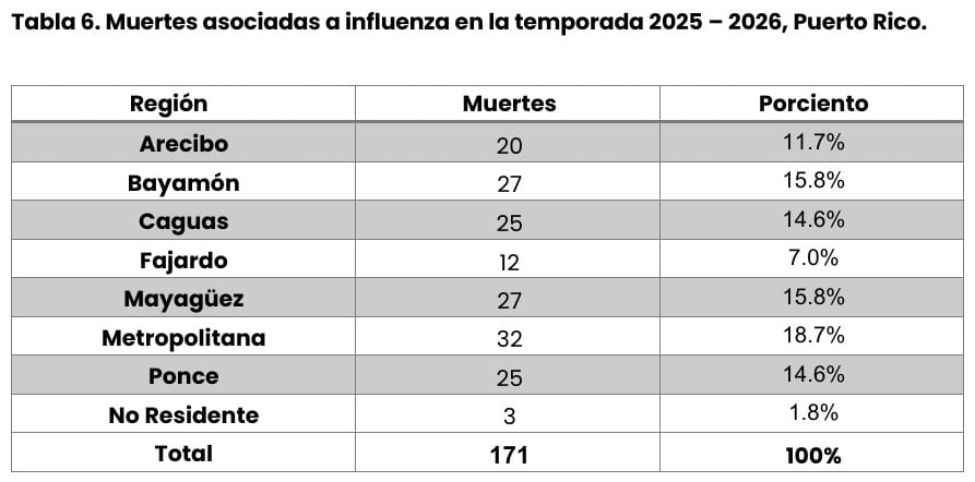 Las hospitalización asociado al virus se ubicó en 5.41% durante la última semana evaluada. En total, lamentablemente se han confirmado 171 muertes relacionadas con influenza en lo que va de temporada, incluyendo cinco fallecimientos añadidos recientemente, mientras otros siete casos permanecen bajo investigación… la gran mayoría sin estar vacunados contra la influenza, explicó.