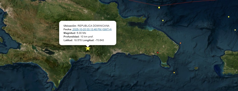 Al momento no se informaron víctimas ni daños mayores. El terremoto ocurrió en Estebanía, municipio de la provincia de Azua, donde residen unos 59,100 habitantes.