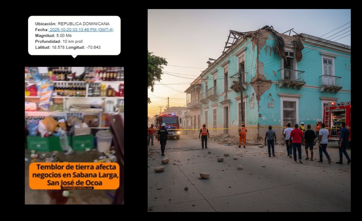 Los primeros visuales en las redes sociales muestran estructuras en la que varios ladrillos de sus paredes cayeron al suelo. Igualmente, trascienden fotos de un colmado en el que varios de los productos cayeron al suelo.